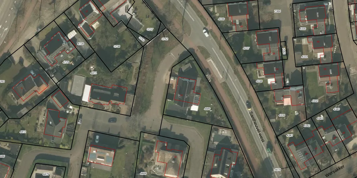 Gebruik de zoekbalk of klik op een perceel voor informatie over de adressen binnen dit perceel.