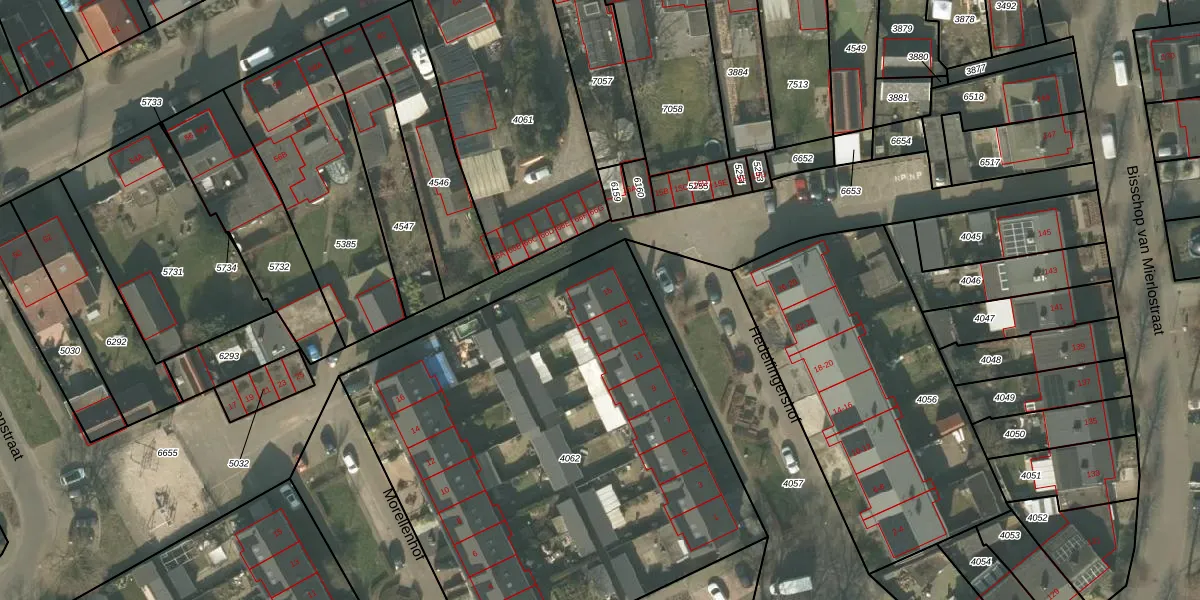 Het perceel waarop het adres ligt is MLO01-F-4062. De afkorting 'MLO01' staat voor kadastrale gemeente Mierlo. Het perceel is kleiner dan gemiddeld in Mierlo. Het perceel is 2909 m² groot, terwijl het gemiddelde ligt op 3053,93 m². De grootste perceeloppervlakte in de kadastrale gemeente is 1,20 km². De kleinste oppervlakte bedraagt 0 m². Op het perceel zijn 16 adressen aanwezig. De huidige grenzen van het perceel zijn digitaal in de Basisregistratie Kadaster (BRK) geregistreerd op 14-05-2009.