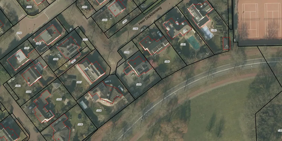Het perceel waarop Heer Dickbierweg 19 staat heeft een oppervlakte van 621 m². Dit is een groot perceel. De perceeloppervlakte wordt geregistreerd door het Kadaster. Gedetailleerde informatie over de maten van dit perceel kunt u vinden in het rapport Kadastrale kaart met maatvoering van Heer Dickbierweg 19.