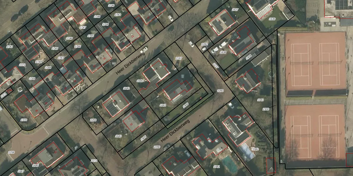 Heer Dickbierweg 9 is gelegen op kadastraal perceel MLO01E1641. Deze kadastrale aanduiding is uniek en wordt gebruikt door het Kadaster om eigendomsrechten en andere zakelijke rechten vast te leggen. Het perceel maakt onderdeel uit van de kadastrale gemeente Mierlo.