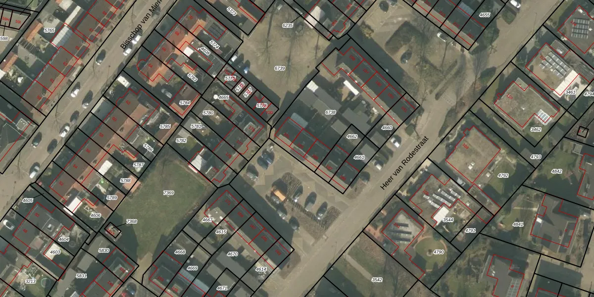 Heer van Rodestraat 183 is gelegen op kadastraal perceel MLO01F6738. Deze kadastrale aanduiding is uniek en wordt gebruikt door het Kadaster om eigendomsrechten en andere zakelijke rechten vast te leggen. Het perceel maakt onderdeel uit van de kadastrale gemeente Mierlo.