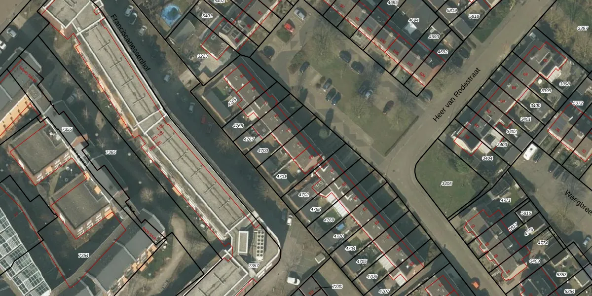 Heer van Rodestraat 71 is gelegen op kadastraal perceel MLO01F4701. Deze kadastrale aanduiding is uniek en wordt gebruikt door het Kadaster om eigendomsrechten en andere zakelijke rechten vast te leggen. Het perceel maakt onderdeel uit van de kadastrale gemeente Mierlo.