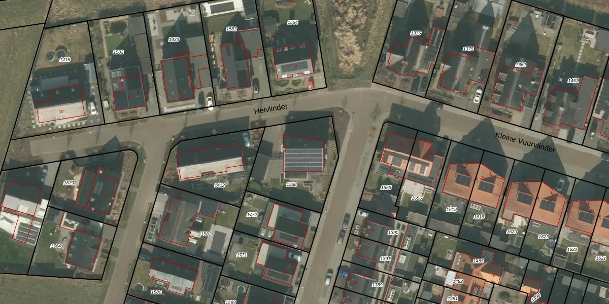 Heivlinder 1 is gelegen op kadastraal perceel MLO01L1568. Deze kadastrale aanduiding is uniek en wordt gebruikt door het Kadaster om eigendomsrechten en andere zakelijke rechten vast te leggen. Het perceel maakt onderdeel uit van de kadastrale gemeente Mierlo.