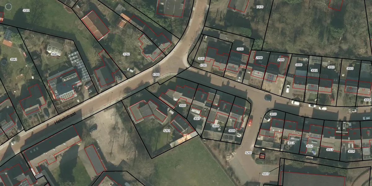 Gebruik de zoekbalk of klik op een perceel voor informatie over de adressen binnen dit perceel.