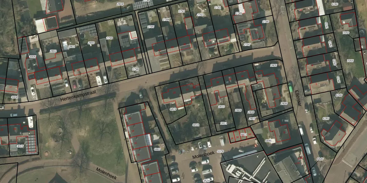 Hertenkampstraat 24 is gelegen op kadastraal perceel MLO01F6818. Deze kadastrale aanduiding is uniek en wordt gebruikt door het Kadaster om eigendomsrechten en andere zakelijke rechten vast te leggen. Het perceel maakt onderdeel uit van de kadastrale gemeente Mierlo.
