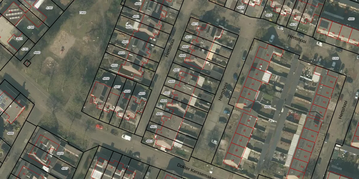 Hertshooi 12 is gelegen op kadastraal perceel MLO01F4866. Deze kadastrale aanduiding is uniek en wordt gebruikt door het Kadaster om eigendomsrechten en andere zakelijke rechten vast te leggen. Het perceel maakt onderdeel uit van de kadastrale gemeente Mierlo.