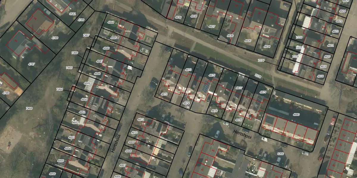 Het perceel waarop Hertshooi 33 staat heeft een oppervlakte van 174 m². Dit is een middelgroot perceel. De perceeloppervlakte wordt geregistreerd door het Kadaster. Gedetailleerde informatie over de maten van dit perceel kunt u vinden in het rapport Kadastrale kaart met maatvoering van Hertshooi 33.