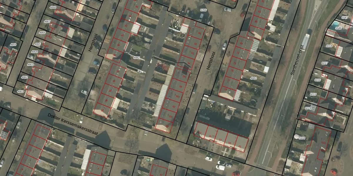 Hertshooi 58 is gelegen op kadastraal perceel MLO01F4882. Deze kadastrale aanduiding is uniek en wordt gebruikt door het Kadaster om eigendomsrechten en andere zakelijke rechten vast te leggen. Het perceel maakt onderdeel uit van de kadastrale gemeente Mierlo.