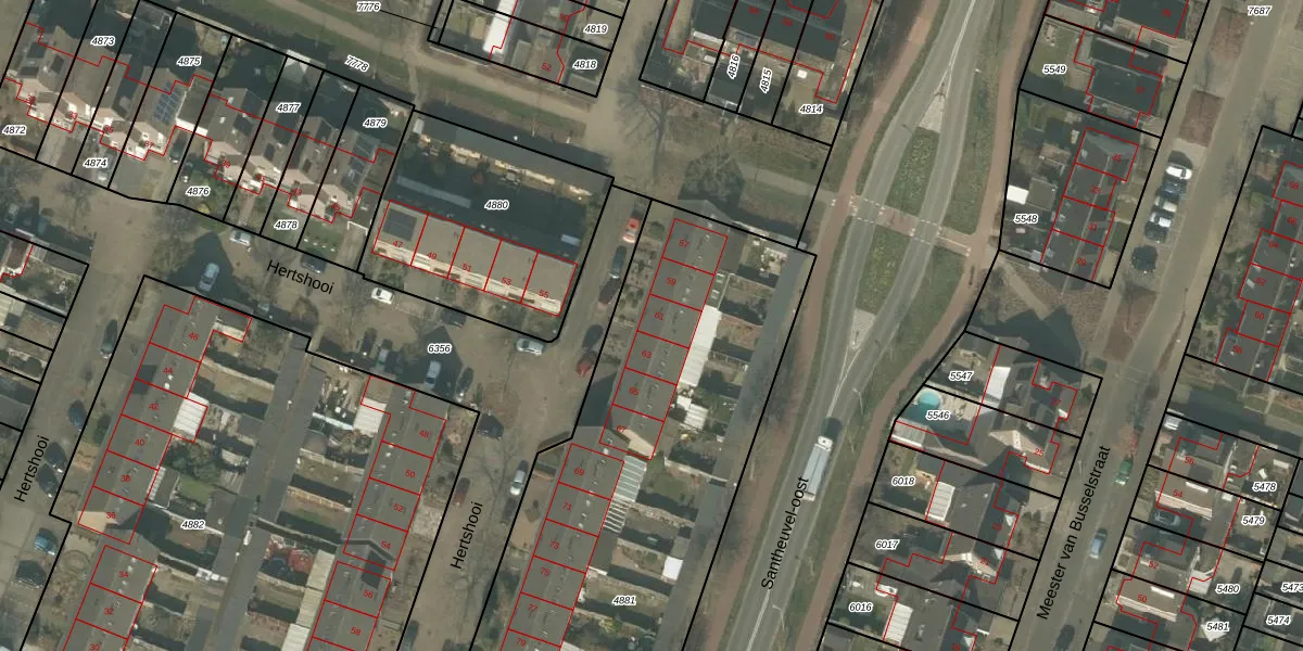 Hertshooi 61 is gelegen op kadastraal perceel MLO01F4881. Deze kadastrale aanduiding is uniek en wordt gebruikt door het Kadaster om eigendomsrechten en andere zakelijke rechten vast te leggen. Het perceel maakt onderdeel uit van de kadastrale gemeente Mierlo.