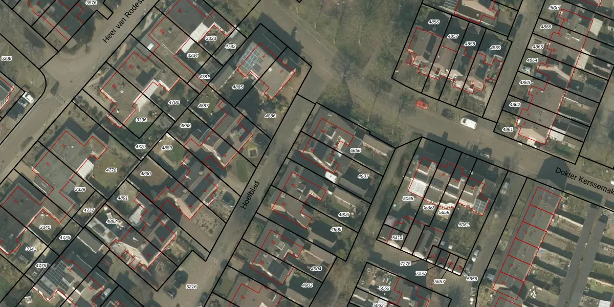 Gebruik de zoekbalk of klik op een perceel voor informatie over de adressen binnen dit perceel.