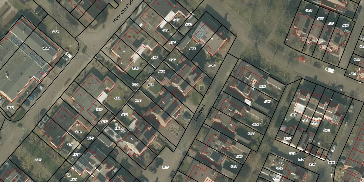 Hoefblad 6 is gelegen op kadastraal perceel MLO01F4888. Deze kadastrale aanduiding is uniek en wordt gebruikt door het Kadaster om eigendomsrechten en andere zakelijke rechten vast te leggen. Het perceel maakt onderdeel uit van de kadastrale gemeente Mierlo.