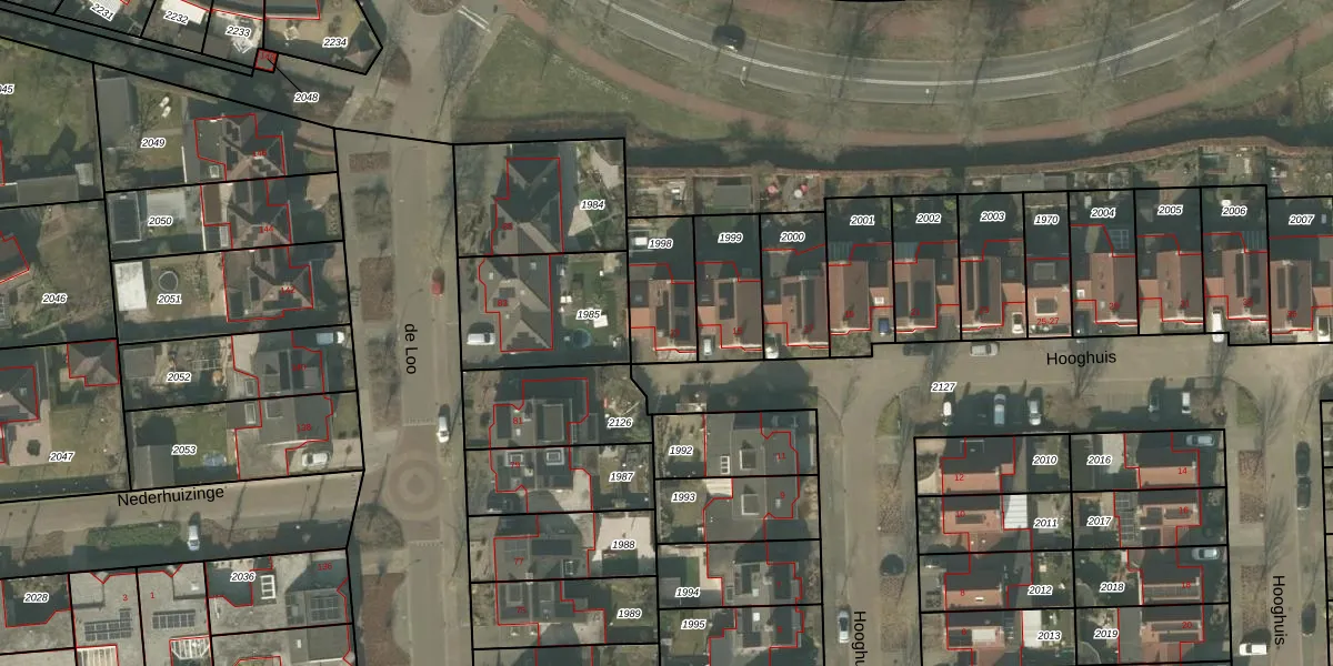Het perceel waarop Hooghuis 13 staat heeft een oppervlakte van 221 m². Dit is een middelgroot perceel. De perceeloppervlakte wordt geregistreerd door het Kadaster. Gedetailleerde informatie over de maten van dit perceel kunt u vinden in het rapport Kadastrale kaart met maatvoering van Hooghuis 13.