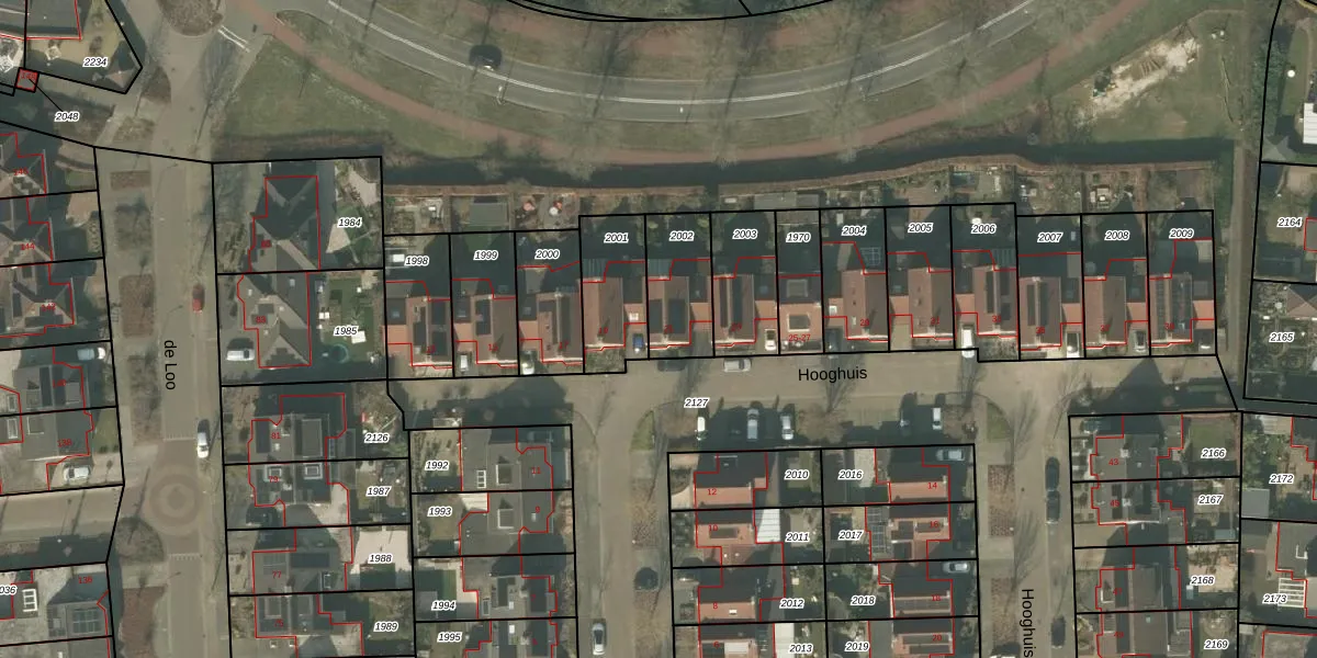 Gebruik de zoekbalk of klik op een perceel voor informatie over de adressen binnen dit perceel.