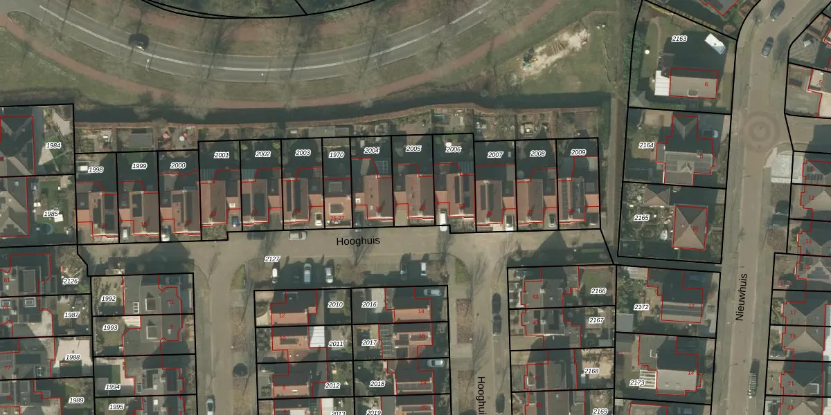 Het perceel waarop Hooghuis 31 staat heeft een oppervlakte van 218 m². Dit is een middelgroot perceel. De perceeloppervlakte wordt geregistreerd door het Kadaster. Gedetailleerde informatie over de maten van dit perceel kunt u vinden in het rapport Kadastrale kaart met maatvoering van Hooghuis 31.