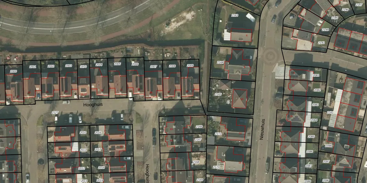 Het perceel waarop Hooghuis 39 staat heeft een oppervlakte van 221 m². Dit is een middelgroot perceel. De perceeloppervlakte wordt geregistreerd door het Kadaster. Gedetailleerde informatie over de maten van dit perceel kunt u vinden in het rapport Kadastrale kaart met maatvoering van Hooghuis 39.