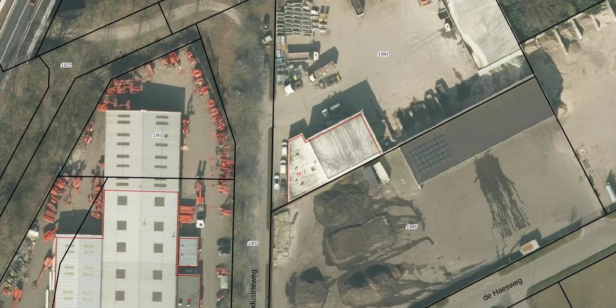 Het perceel waarop Industrieweg 18 staat heeft een oppervlakte van 4985 m². Dit is een zeer groot perceel. De perceeloppervlakte wordt geregistreerd door het Kadaster. Gedetailleerde informatie over de maten van dit perceel kunt u vinden in het rapport Kadastrale kaart met maatvoering van Industrieweg 18.