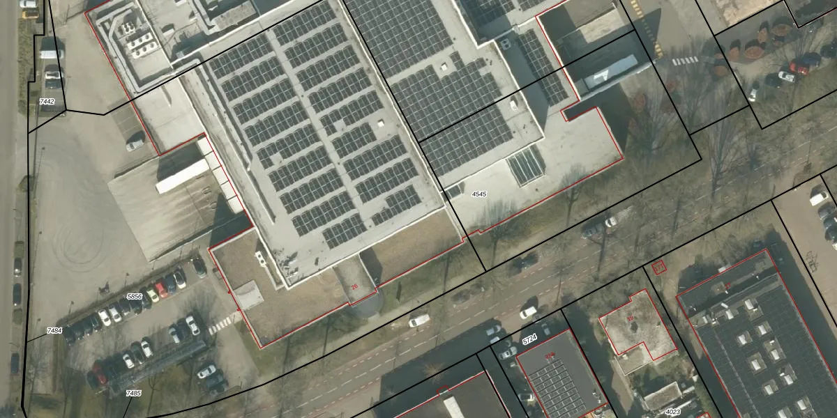 Het perceel waarop Industrieweg 26 staat heeft een oppervlakte van 7450 m². Dit is een zeer groot perceel. De perceeloppervlakte wordt geregistreerd door het Kadaster. Gedetailleerde informatie over de maten van dit perceel kunt u vinden in het rapport Kadastrale kaart met maatvoering van Industrieweg 26.