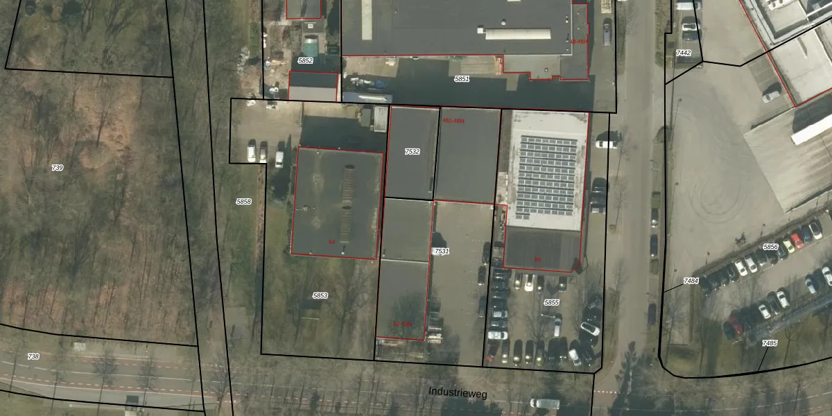 Industrieweg 52-E is gelegen op kadastraal perceel MLO01F7531. Deze kadastrale aanduiding is uniek en wordt gebruikt door het Kadaster om eigendomsrechten en andere zakelijke rechten vast te leggen. Het perceel maakt onderdeel uit van de kadastrale gemeente Mierlo.