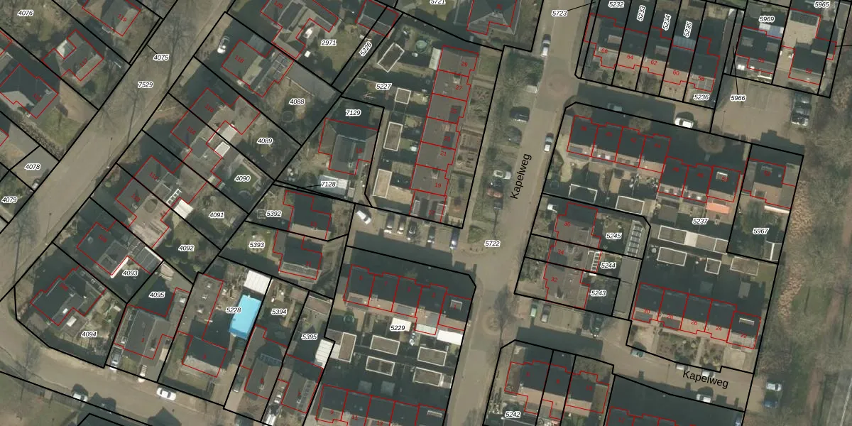 Kapelweg 17 is gelegen op kadastraal perceel MLO01F5227. Deze kadastrale aanduiding is uniek en wordt gebruikt door het Kadaster om eigendomsrechten en andere zakelijke rechten vast te leggen. Het perceel maakt onderdeel uit van de kadastrale gemeente Mierlo.