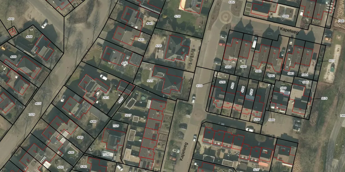 Gebruik de zoekbalk of klik op een perceel voor informatie over de adressen binnen dit perceel.