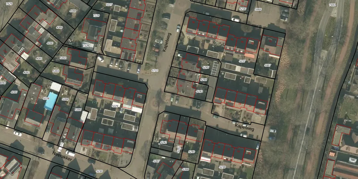 Kapelweg 32 is gelegen op kadastraal perceel MLO01F5243. Deze kadastrale aanduiding is uniek en wordt gebruikt door het Kadaster om eigendomsrechten en andere zakelijke rechten vast te leggen. Het perceel maakt onderdeel uit van de kadastrale gemeente Mierlo.