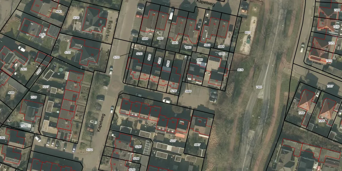 Gebruik de zoekbalk of klik op een perceel voor informatie over de adressen binnen dit perceel.