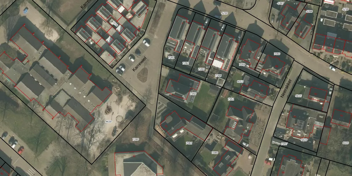 Gebruik de zoekbalk of klik op een perceel voor informatie over de adressen binnen dit perceel.
