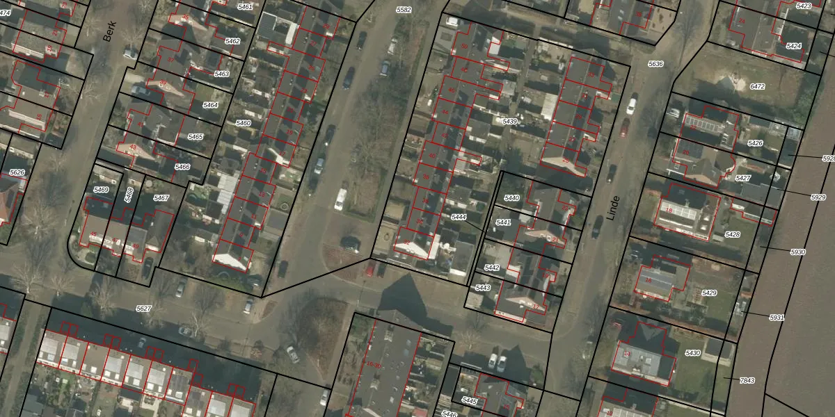Het perceel waarop Kastanje 36 staat heeft een oppervlakte van 2227 m². Dit is een zeer groot perceel. De perceeloppervlakte wordt geregistreerd door het Kadaster. Gedetailleerde informatie over de maten van dit perceel kunt u vinden in het rapport Kadastrale kaart met maatvoering van Kastanje 36.