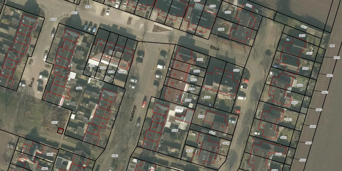 Kastanje 64 is gelegen op kadastraal perceel MLO01F5534. Deze kadastrale aanduiding is uniek en wordt gebruikt door het Kadaster om eigendomsrechten en andere zakelijke rechten vast te leggen. Het perceel maakt onderdeel uit van de kadastrale gemeente Mierlo.