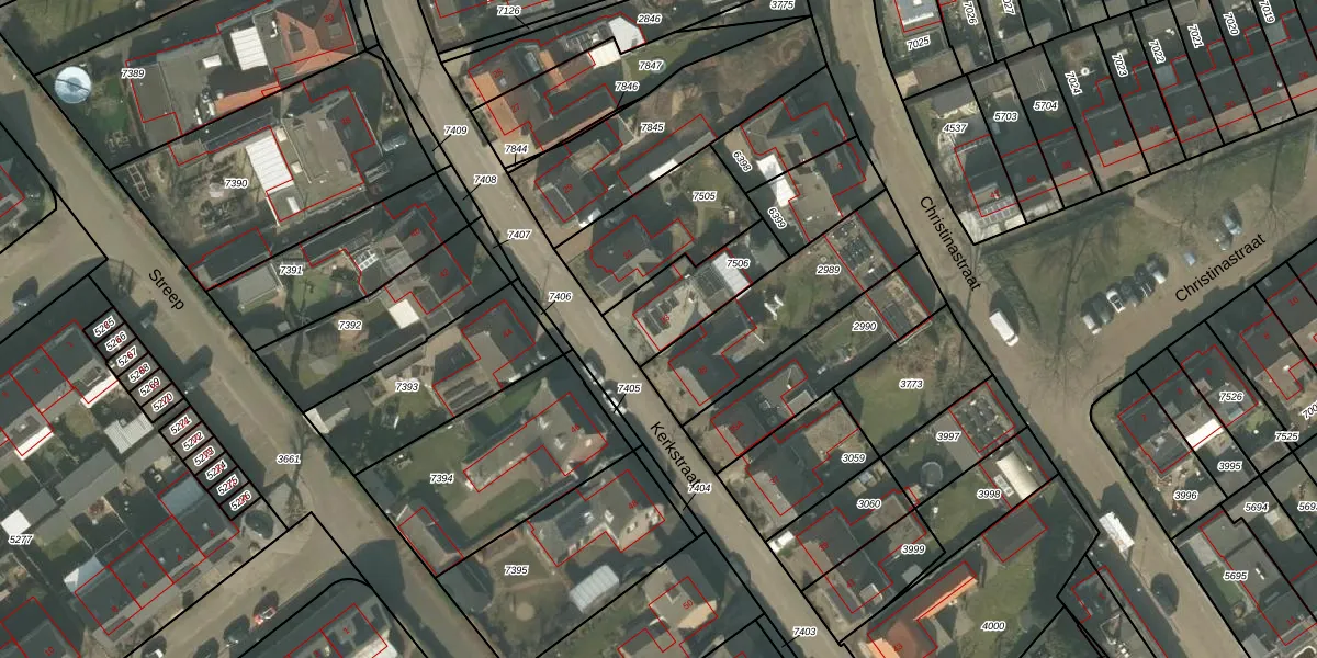Kerkstraat 33 is gelegen op kadastraal perceel MLO01F7506. Deze kadastrale aanduiding is uniek en wordt gebruikt door het Kadaster om eigendomsrechten en andere zakelijke rechten vast te leggen. Het perceel maakt onderdeel uit van de kadastrale gemeente Mierlo.