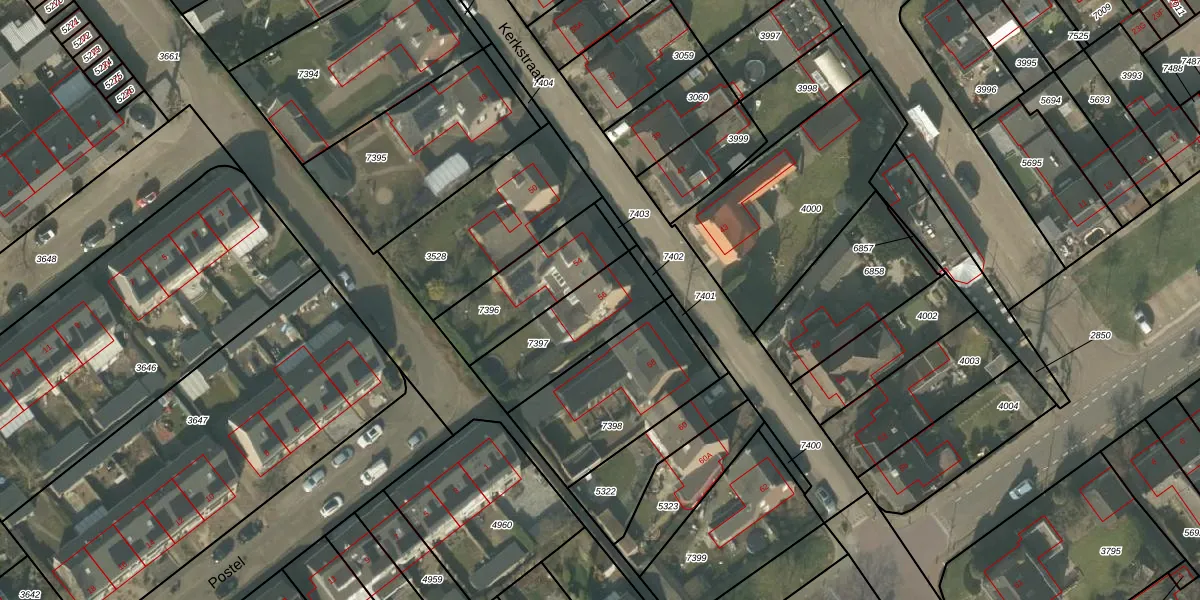 Het perceel waarop Kerkstraat 56 staat heeft een oppervlakte van 327 m². Dit is een groot perceel. De perceeloppervlakte wordt geregistreerd door het Kadaster. Gedetailleerde informatie over de maten van dit perceel kunt u vinden in het rapport Kadastrale kaart met maatvoering van Kerkstraat 56.