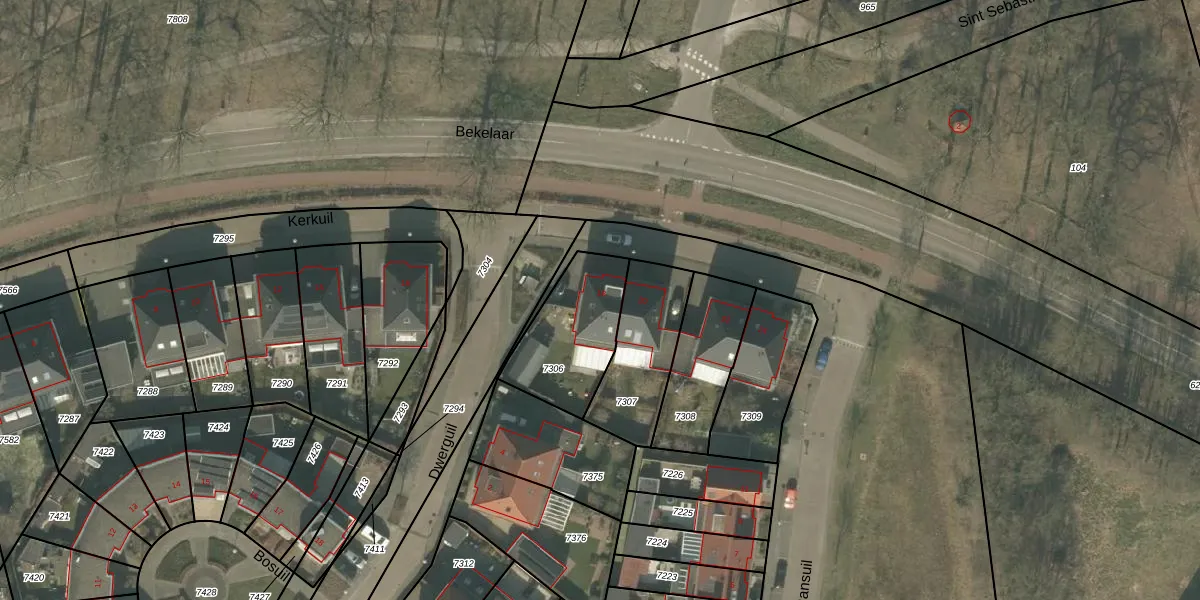 Gebruik de zoekbalk of klik op een perceel voor informatie over de adressen binnen dit perceel.