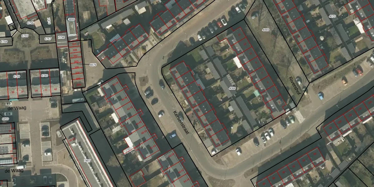 Kersenstraat 13 is gelegen op kadastraal perceel MLO01F4068. Deze kadastrale aanduiding is uniek en wordt gebruikt door het Kadaster om eigendomsrechten en andere zakelijke rechten vast te leggen. Het perceel maakt onderdeel uit van de kadastrale gemeente Mierlo.