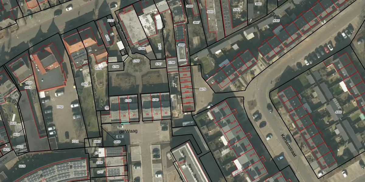 Kersenstraat 30-E is gelegen op kadastraal perceel MLO01F6679. Deze kadastrale aanduiding is uniek en wordt gebruikt door het Kadaster om eigendomsrechten en andere zakelijke rechten vast te leggen. Het perceel maakt onderdeel uit van de kadastrale gemeente Mierlo.