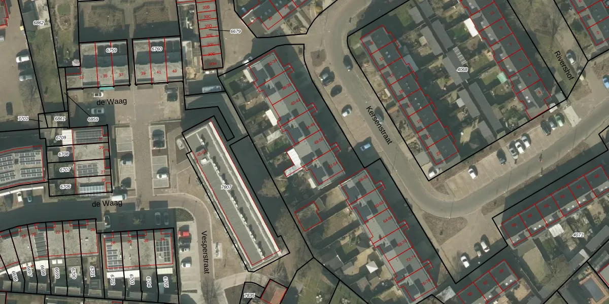 Het perceel waarop Kersenstraat 50 staat heeft een oppervlakte van 7600 m². Dit is een zeer groot perceel. De perceeloppervlakte wordt geregistreerd door het Kadaster. Gedetailleerde informatie over de maten van dit perceel kunt u vinden in het rapport Kadastrale kaart met maatvoering van Kersenstraat 50.