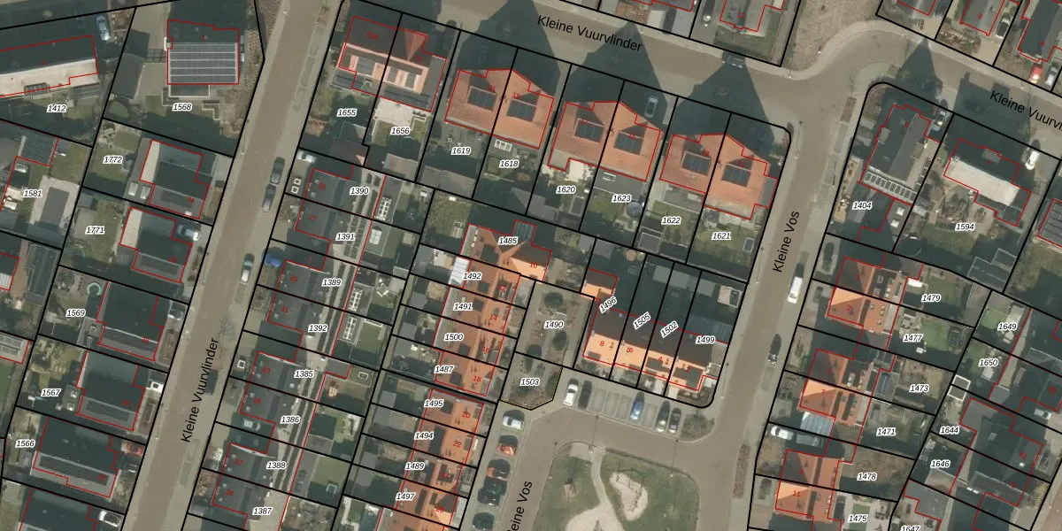 Kleine Vos 10 is gelegen op kadastraal perceel MLO01L1485. Deze kadastrale aanduiding is uniek en wordt gebruikt door het Kadaster om eigendomsrechten en andere zakelijke rechten vast te leggen. Het perceel maakt onderdeel uit van de kadastrale gemeente Mierlo.