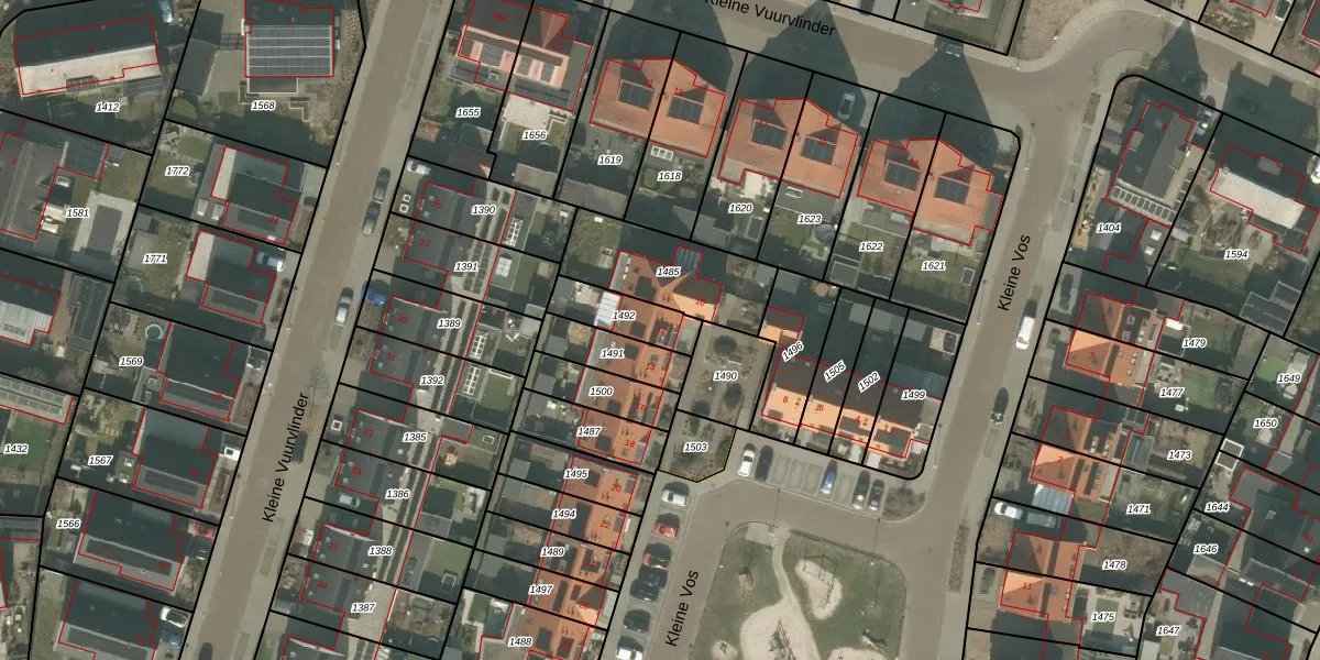 Gebruik de zoekbalk of klik op een perceel voor informatie over de adressen binnen dit perceel.