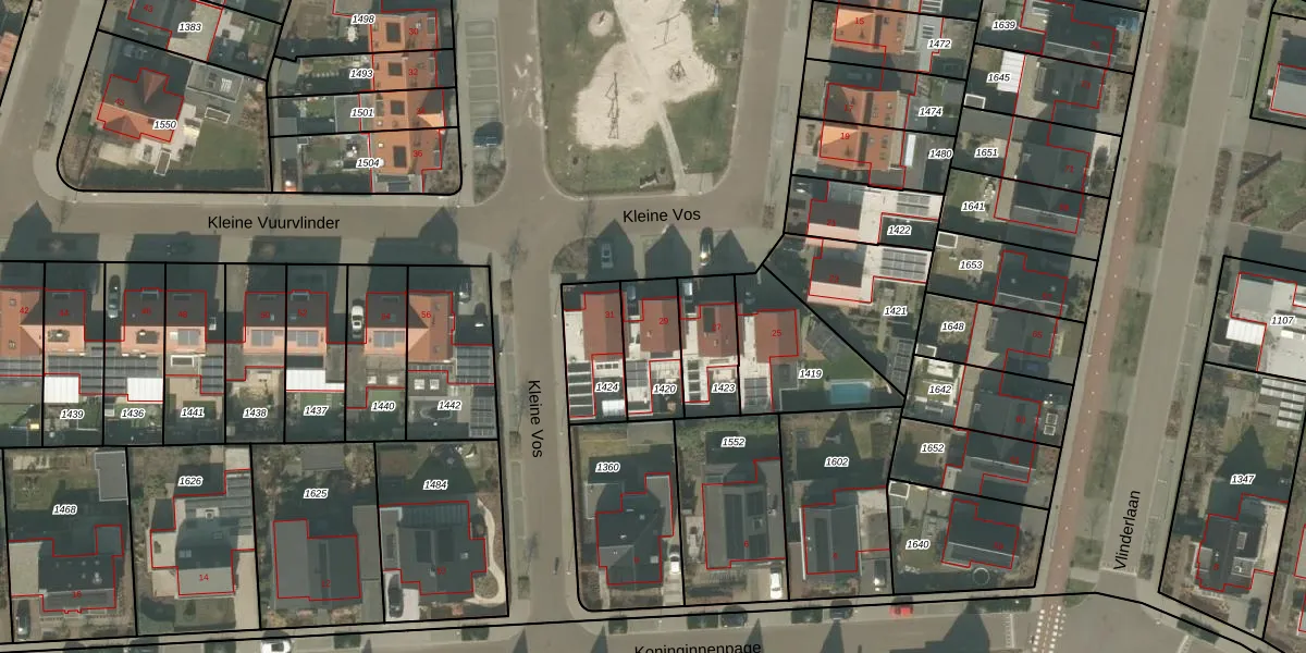 Kleine Vos 29 is gelegen op kadastraal perceel MLO01L1420. Deze kadastrale aanduiding is uniek en wordt gebruikt door het Kadaster om eigendomsrechten en andere zakelijke rechten vast te leggen. Het perceel maakt onderdeel uit van de kadastrale gemeente Mierlo.