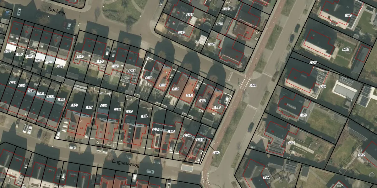 Het perceel waarop Koolwitje 5 staat heeft een oppervlakte van 174 m². Dit is een middelgroot perceel. De perceeloppervlakte wordt geregistreerd door het Kadaster. Gedetailleerde informatie over de maten van dit perceel kunt u vinden in het rapport Kadastrale kaart met maatvoering van Koolwitje 5.