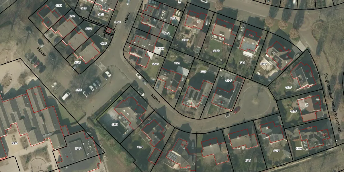 Gebruik de zoekbalk of klik op een perceel voor informatie over de adressen binnen dit perceel.