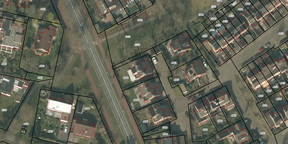 Het perceel waarop Langenakker 206 staat heeft een oppervlakte van 443 m². Dit is een groot perceel. De perceeloppervlakte wordt geregistreerd door het Kadaster. Gedetailleerde informatie over de maten van dit perceel kunt u vinden in het rapport Kadastrale kaart met maatvoering van Langenakker 206.
