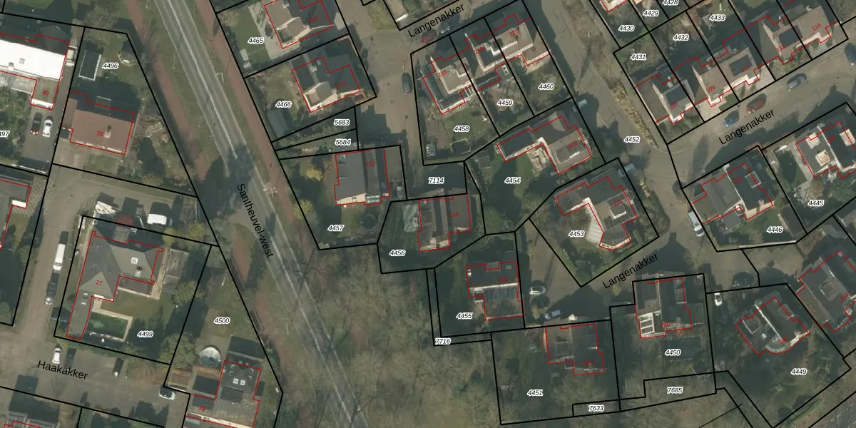 Langenakker 214 is gelegen op kadastraal perceel MLO01F4456. Deze kadastrale aanduiding is uniek en wordt gebruikt door het Kadaster om eigendomsrechten en andere zakelijke rechten vast te leggen. Het perceel maakt onderdeel uit van de kadastrale gemeente Mierlo.