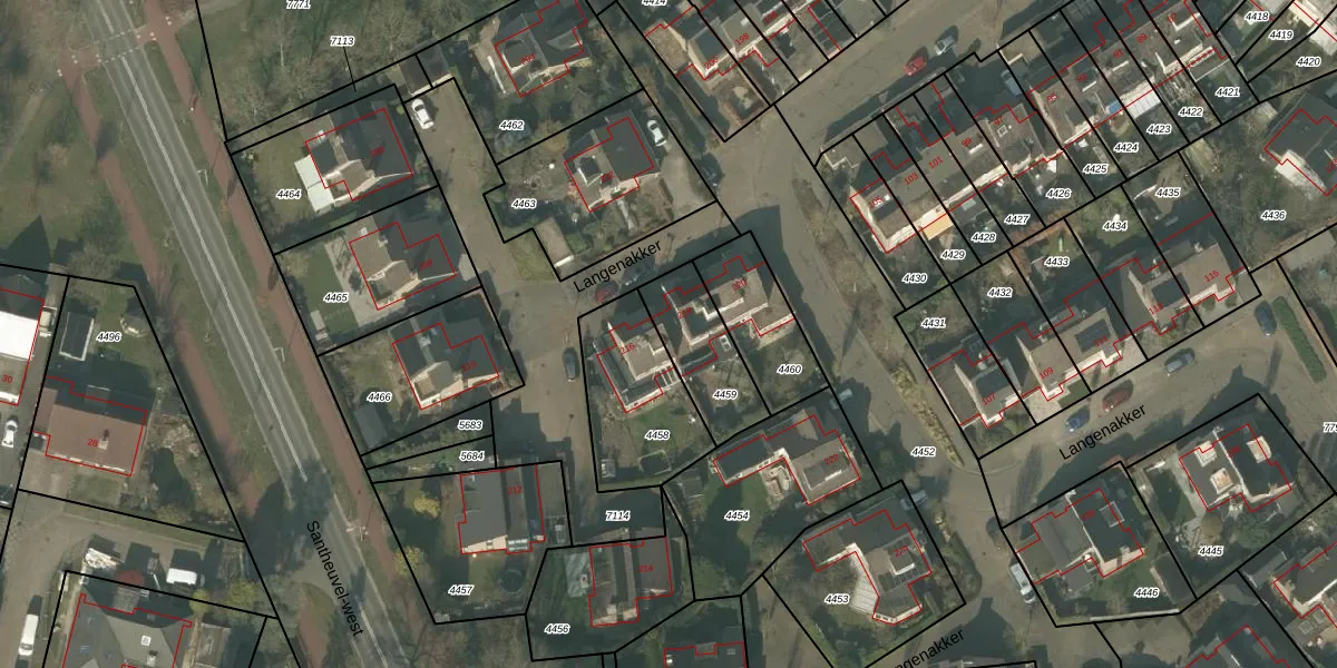 Langenakker 218 is gelegen op kadastraal perceel MLO01F4459. Deze kadastrale aanduiding is uniek en wordt gebruikt door het Kadaster om eigendomsrechten en andere zakelijke rechten vast te leggen. Het perceel maakt onderdeel uit van de kadastrale gemeente Mierlo.