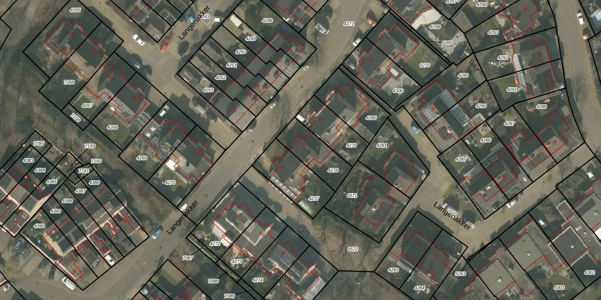 Langenakker 55 is gelegen op kadastraal perceel MLO01F4278. Deze kadastrale aanduiding is uniek en wordt gebruikt door het Kadaster om eigendomsrechten en andere zakelijke rechten vast te leggen. Het perceel maakt onderdeel uit van de kadastrale gemeente Mierlo.