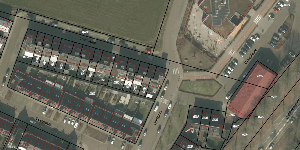 Het perceel waarop het adres ligt is MLO01-L-1027. De afkorting 'MLO01' staat voor kadastrale gemeente Mierlo. Het perceel is kleiner dan gemiddeld in Mierlo. Het perceel is 111 m² groot, terwijl het gemiddelde ligt op 3053,93 m². Het grootste perceel in de kadastrale gemeente is 1,20 km². Het kleinste perceel heeft een oppervlakte van 0 m². Dit is het enige adres dat aanwezig is op het perceel. In de Basisregistratie Kadaster (BRK) werden de grenzen van het perceel geregistreerd op 19-10-2011.