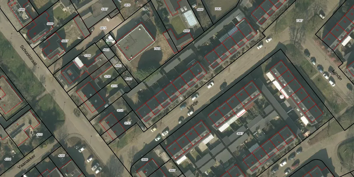 Het perceel waarop Lijndje 68 staat heeft een oppervlakte van 3780 m². Dit is een zeer groot perceel. De perceeloppervlakte wordt geregistreerd door het Kadaster. Gedetailleerde informatie over de maten van dit perceel kunt u vinden in het rapport Kadastrale kaart met maatvoering van Lijndje 68.
