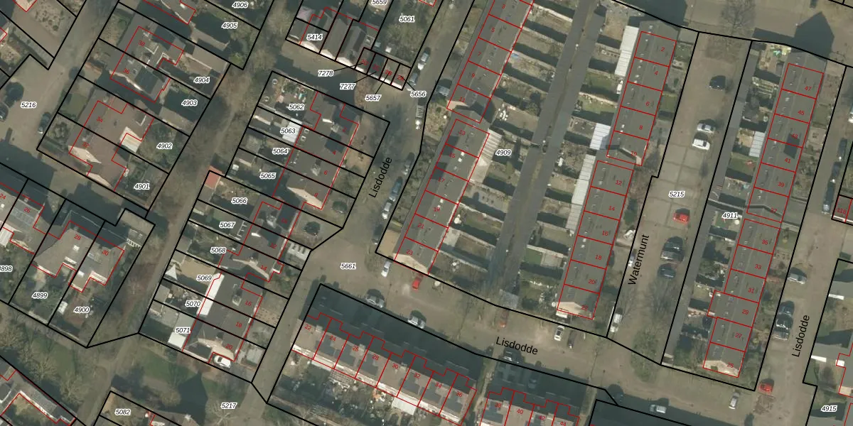 Het perceel waarop Lisdodde 19 staat heeft een oppervlakte van 4142 m². Dit is een zeer groot perceel. De perceeloppervlakte wordt geregistreerd door het Kadaster. Gedetailleerde informatie over de maten van dit perceel kunt u vinden in het rapport Kadastrale kaart met maatvoering van Lisdodde 19.