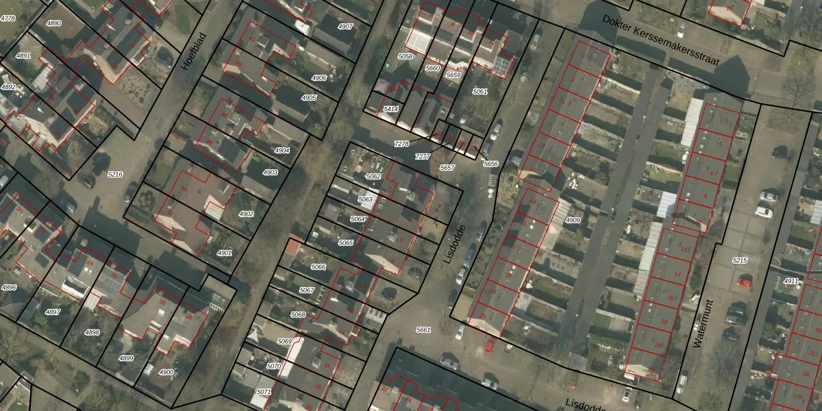 Gebruik de zoekbalk of klik op een perceel voor informatie over de adressen binnen dit perceel.