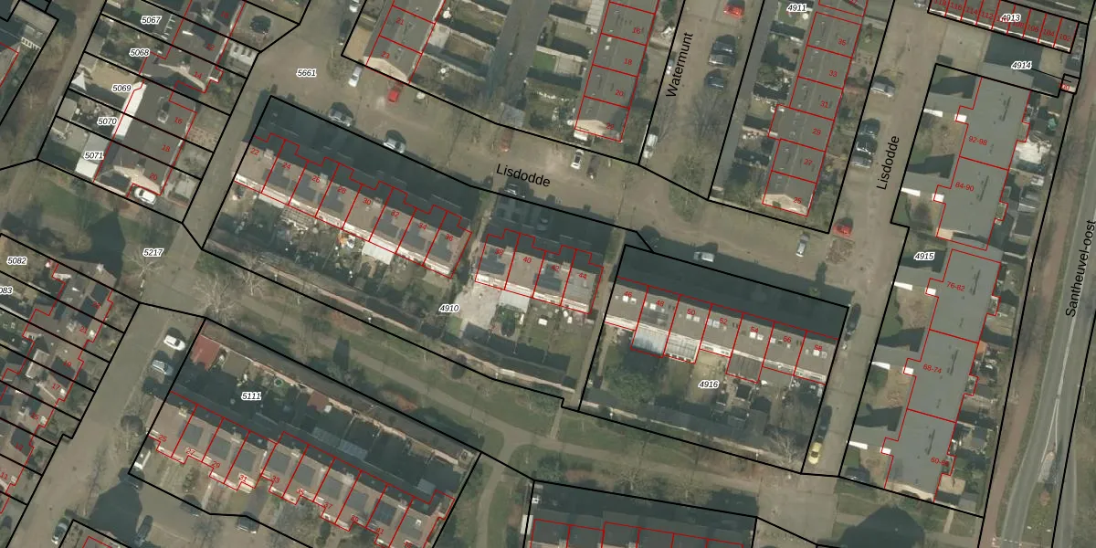 Het perceel waarop het adres ligt is MLO01-F-4910. De afkorting 'MLO01' staat voor kadastrale gemeente Mierlo. De gemiddelde perceelgrootte in Mierlo is 3053,93 m². Dit perceel is kleiner: de perceeloppervlakte bedraagt 2272 m². De grootste perceeloppervlakte in de kadastrale gemeente is 1,20 km². De kleinste oppervlakte bedraagt 0 m². Op het perceel zijn 12 adressen aanwezig. De huidige grenzen van het perceel zijn digitaal in de Basisregistratie Kadaster (BRK) geregistreerd op 19-05-2009.