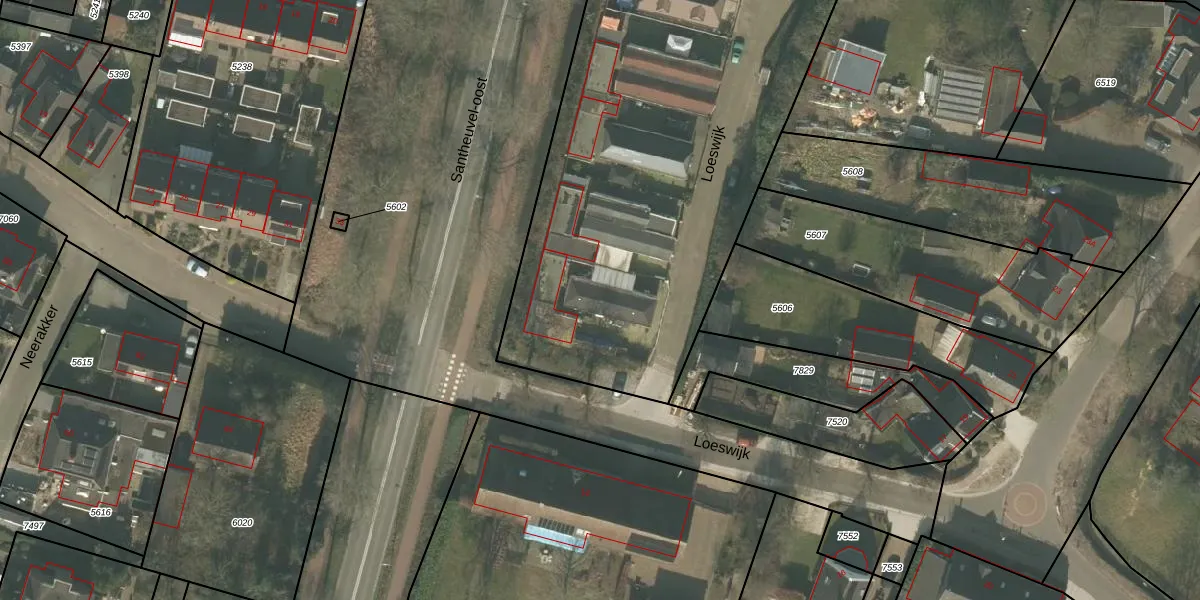Het perceel waarop Loeswijk 1 staat heeft een oppervlakte van 4625 m². Dit is een zeer groot perceel. De perceeloppervlakte wordt geregistreerd door het Kadaster. Gedetailleerde informatie over de maten van dit perceel kunt u vinden in het rapport Kadastrale kaart met maatvoering van Loeswijk 1.